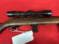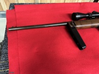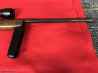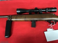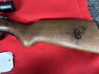 Mossberg Model 152K Carbine. 10 shot magazine, scope, fold down front stock, 1940's era, finish is turning plum. Light handling marks, (see photos) Walnut stock. Very good condition for its age.